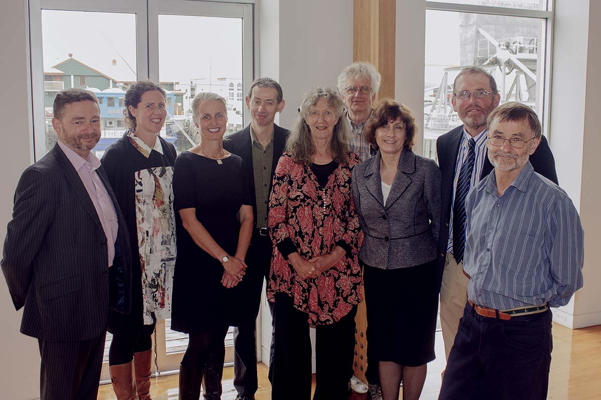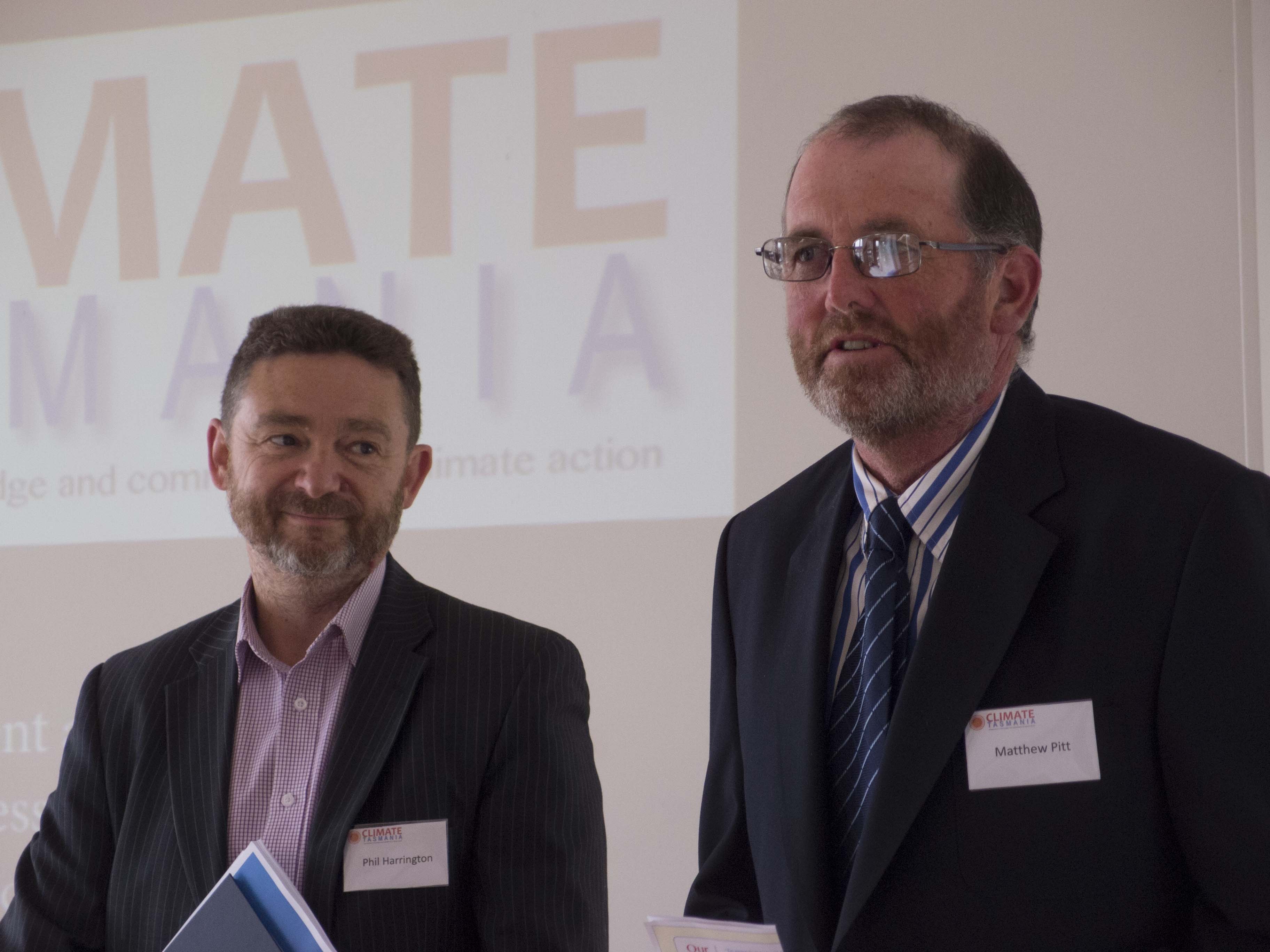 Left: Climate Tasmania members at launch. From left to right: Phil Harrington (co-convenor), Jess Feehely, Jan McDonald, James Risbey, Margaret Steadman, John Hunter, Lesley Hughes (national Climate Council), Matt Pitt (co-convenor) and Chris Harries.